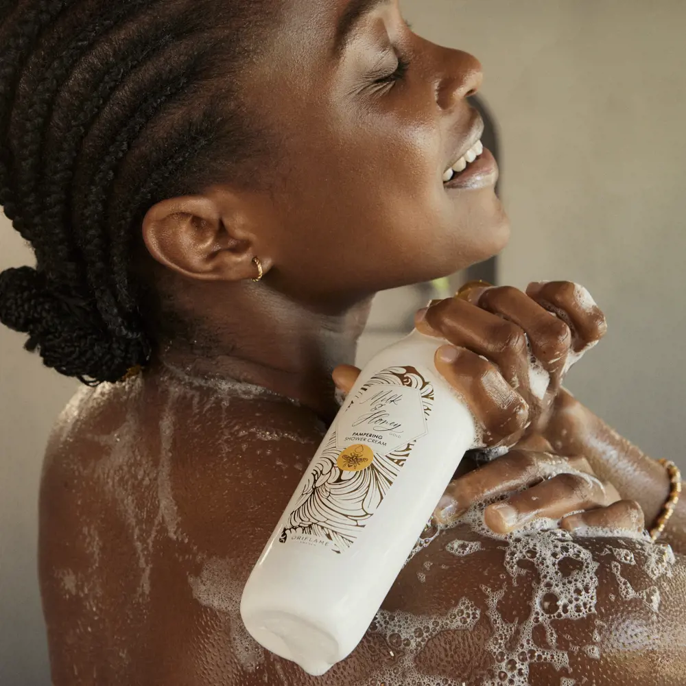 Su fórmula espumosa transforma la ducha en un momento de placer sensorial.