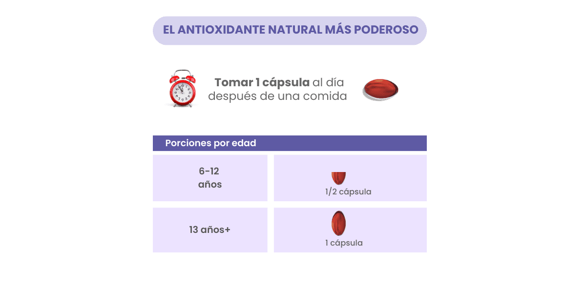 Para niños (6-12 años): ½ cápsula diaria